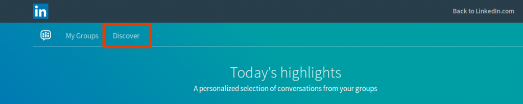 After clicking on the Groups icon, it will take you to a new page. Once there, click on the Discover button to see groups suggested for you based on your profile.