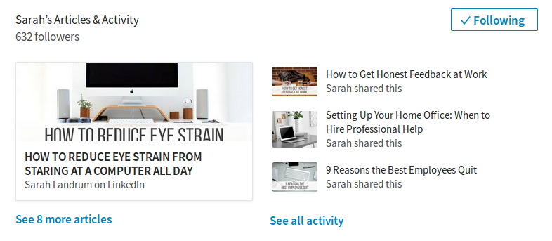 Remember 'Activity' is the first section that is shown on your LinkedIn profile. The kind of articles shared by you showcase your interests, knowledge and tell the viewer if you are up to speed with the latest happenings in your industry.