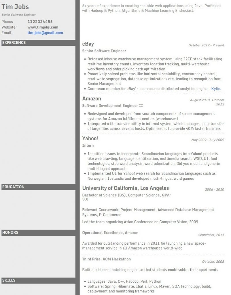 Here is an example of the functional resume format created using Resumonk’s Slim template: